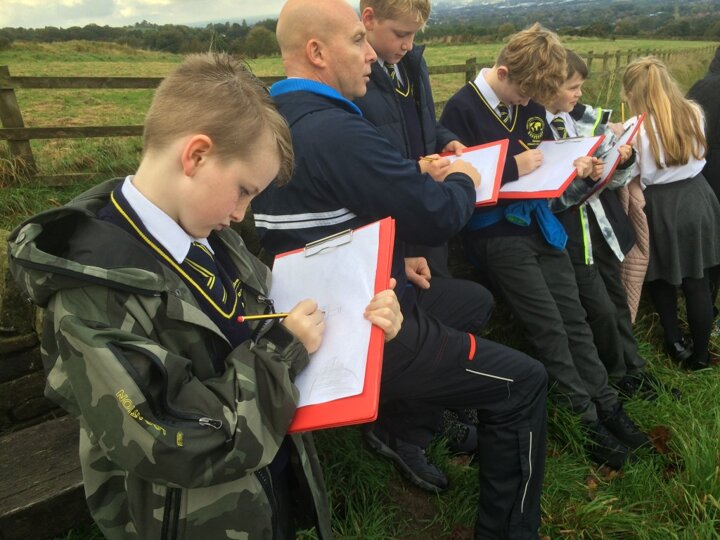As part of our Tame to Amazon topic, we went on a field trip up to Werneth Low last week. We looked for landmarks across Tameside, and discussed the towns that we could see. We sketched the view, and turned these into maps back in class.