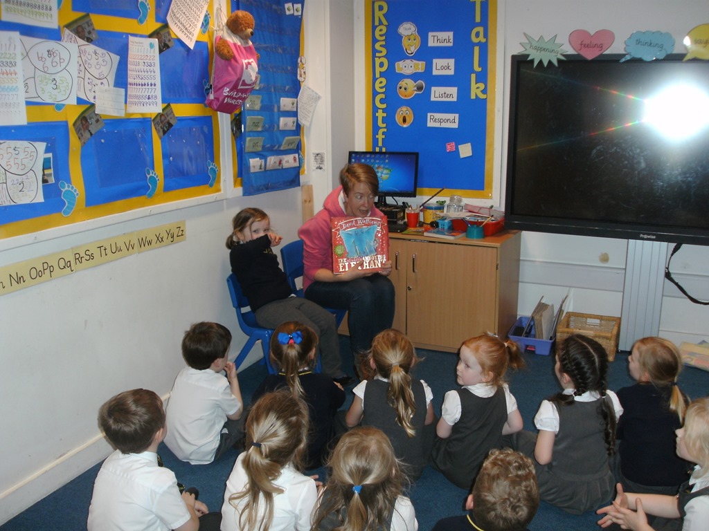 Eimear’s mum read ‘The Slightly Annoying Elephant ‘by David Walliams and Bethany’s mum read ‘Oi Frog!’ by Kes Grey and Jim Field.