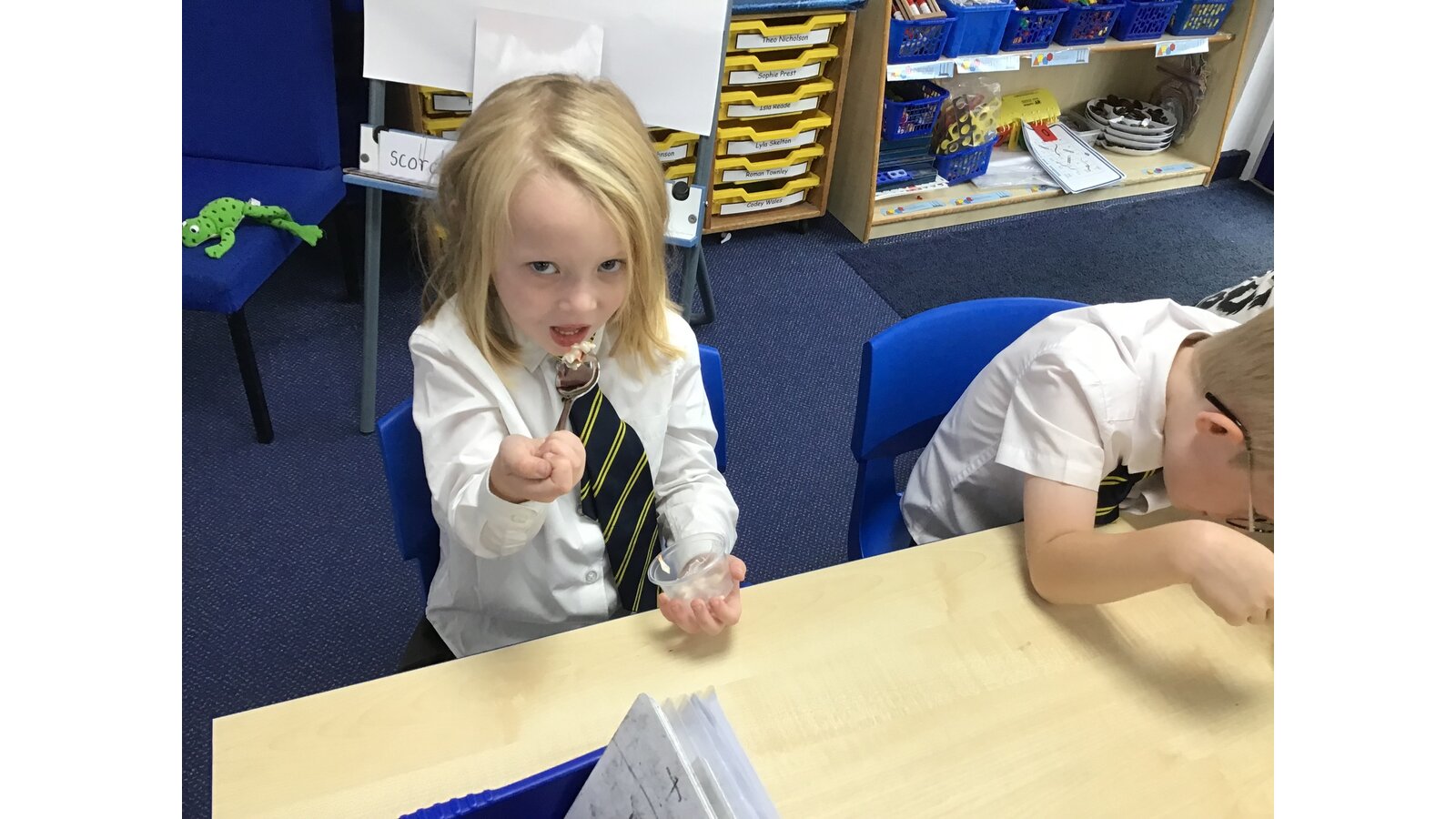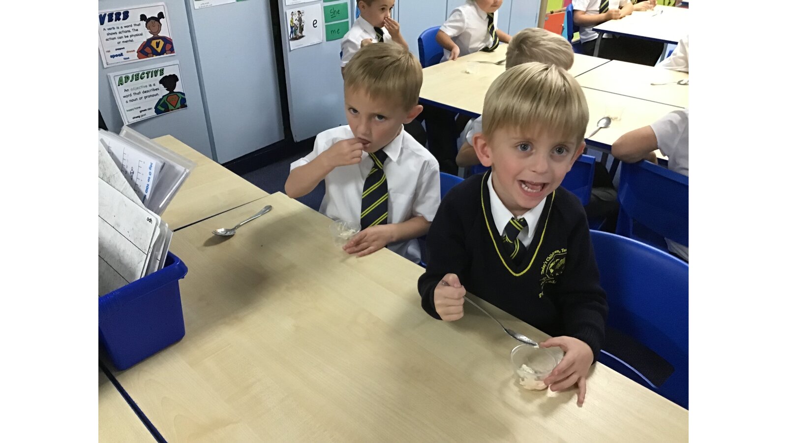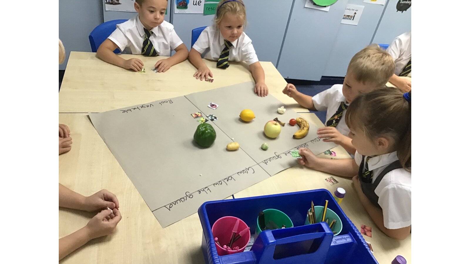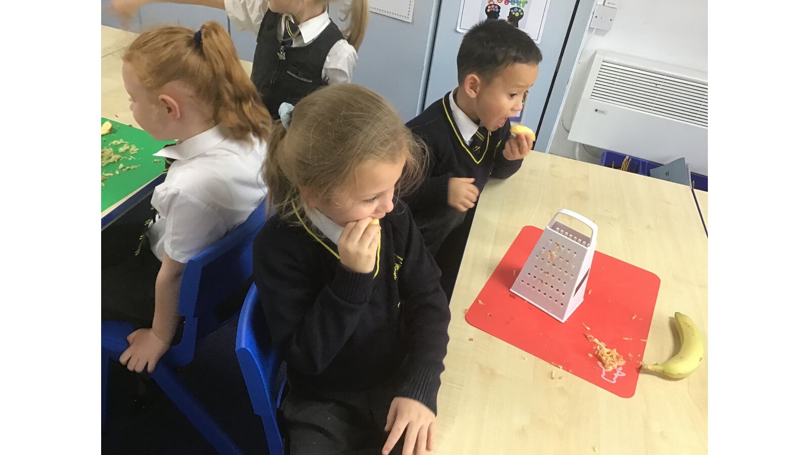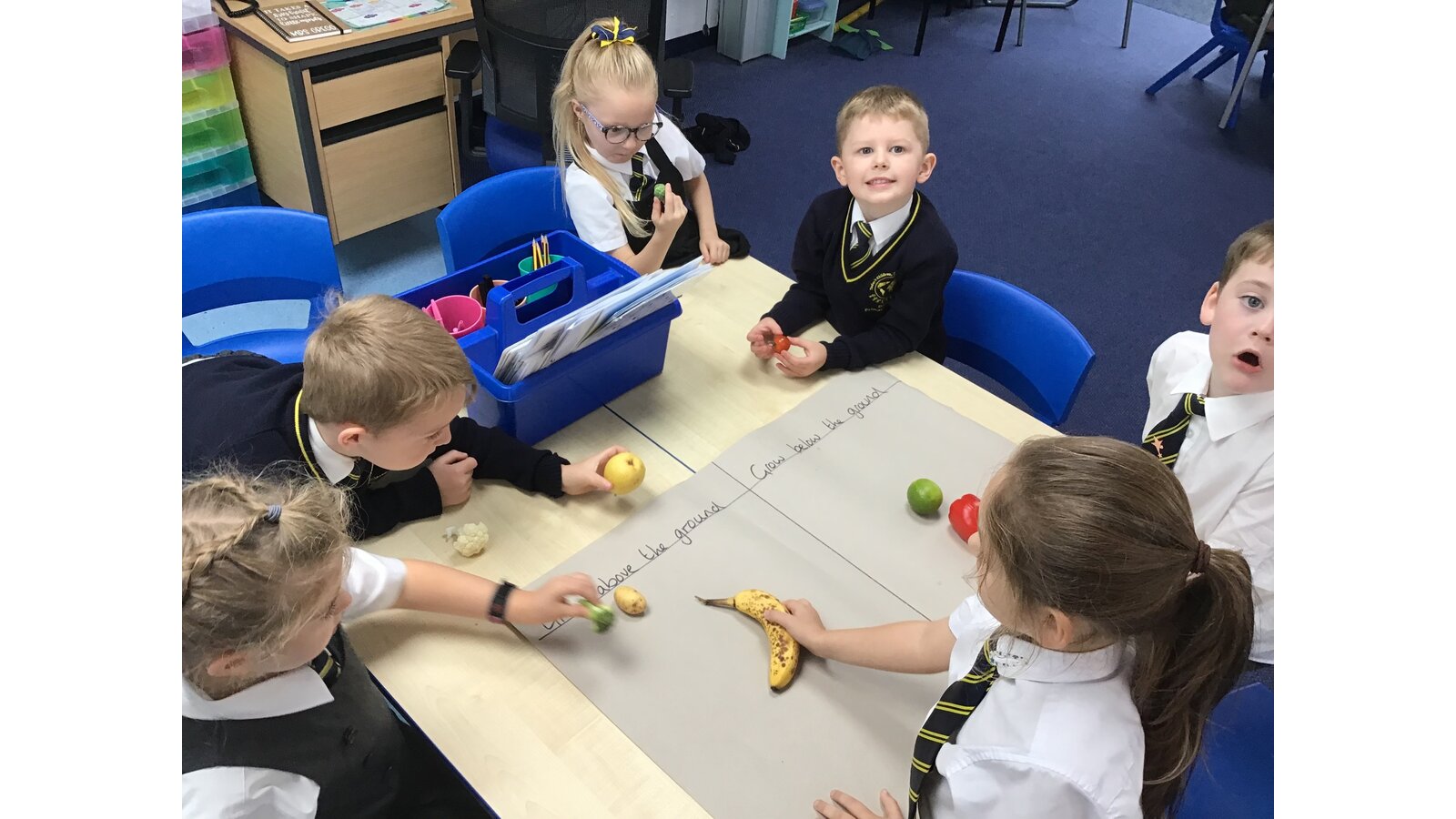 During our Food Technology lessons we have been looking at different vegetables and fruit. We have looked at where they come from and if they grow above ground or under ground. We also got to taste some vegetables and we discussed whether we liked them and what they tasted like and we described the textures with our partners. We have also been chopping, grating and squeezing some of the fruits and vegetables. We have had lots of fun!